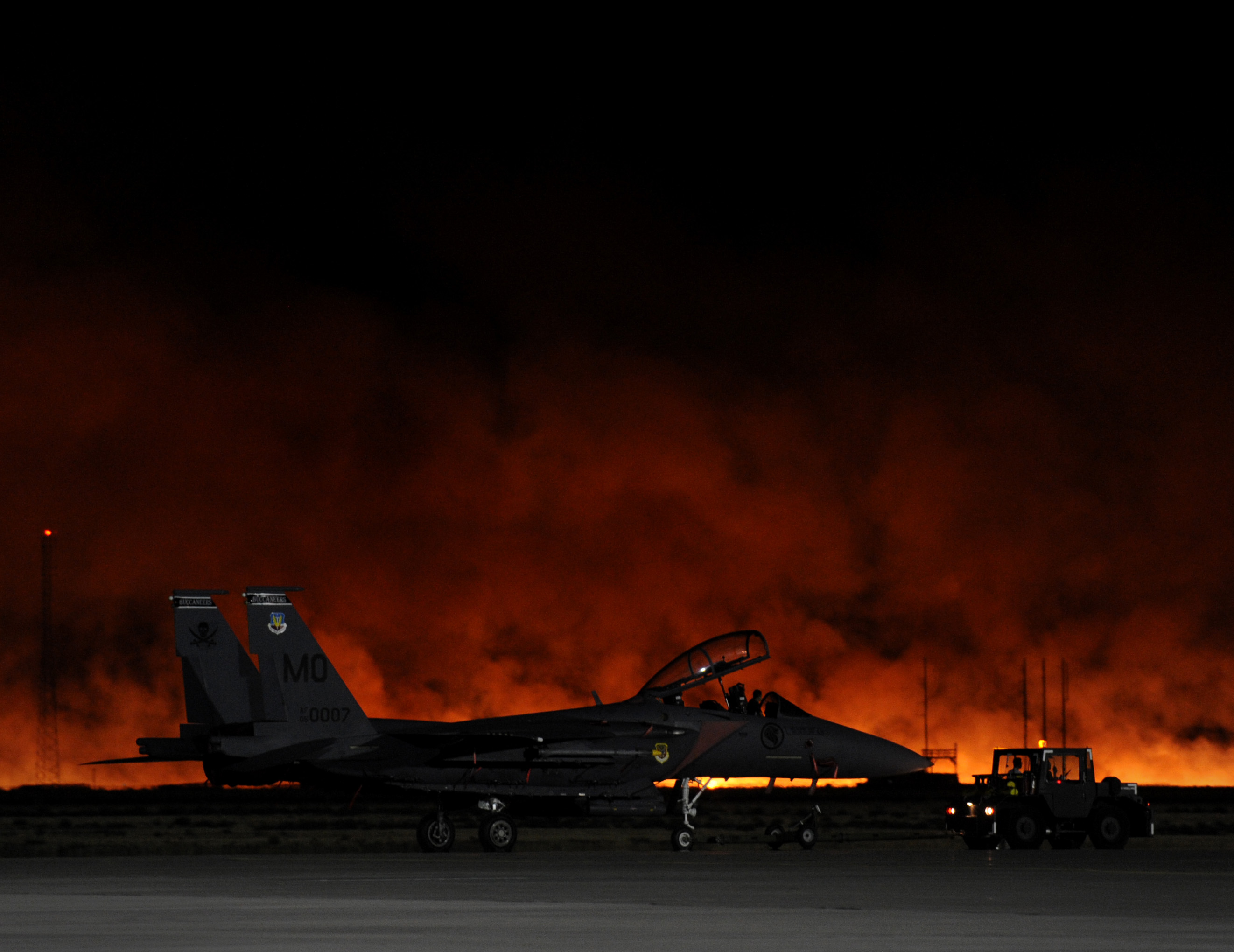 Photo: F-15SG escapes from bush fire at Mountain Home AFB Posted on August 22, 2011August 22, 2011 by alert5 The scene looks like a war zone but its actually a bush fire that burned approximately 10,000 acres at Mountain Home Air Force Base on Aug. 15. U.S. Air Force photo by Staff Sgt. Gina Chiaverotti-Paige Related posts (Automatically Generated): RSAF could join RSAF in Mountain Home AFB for F-15 training The other RSAF to setup F-15 training squadron at Mountain Home German air force wraps up Mountain Roundup 2010 F-22s at Mountain Home for training Indian C-130J to arrive home this week 390th FS to make final flights over Idaho