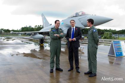 British Defense Secretary Philip Hammond speaking to pilots from No. 6 Squadron at Changi East Air Base, Singapore. The Eurofighter returns to Singapore again after losing to the F-15SG in the RSAF’s Next Generation Fighter competition in 2005.