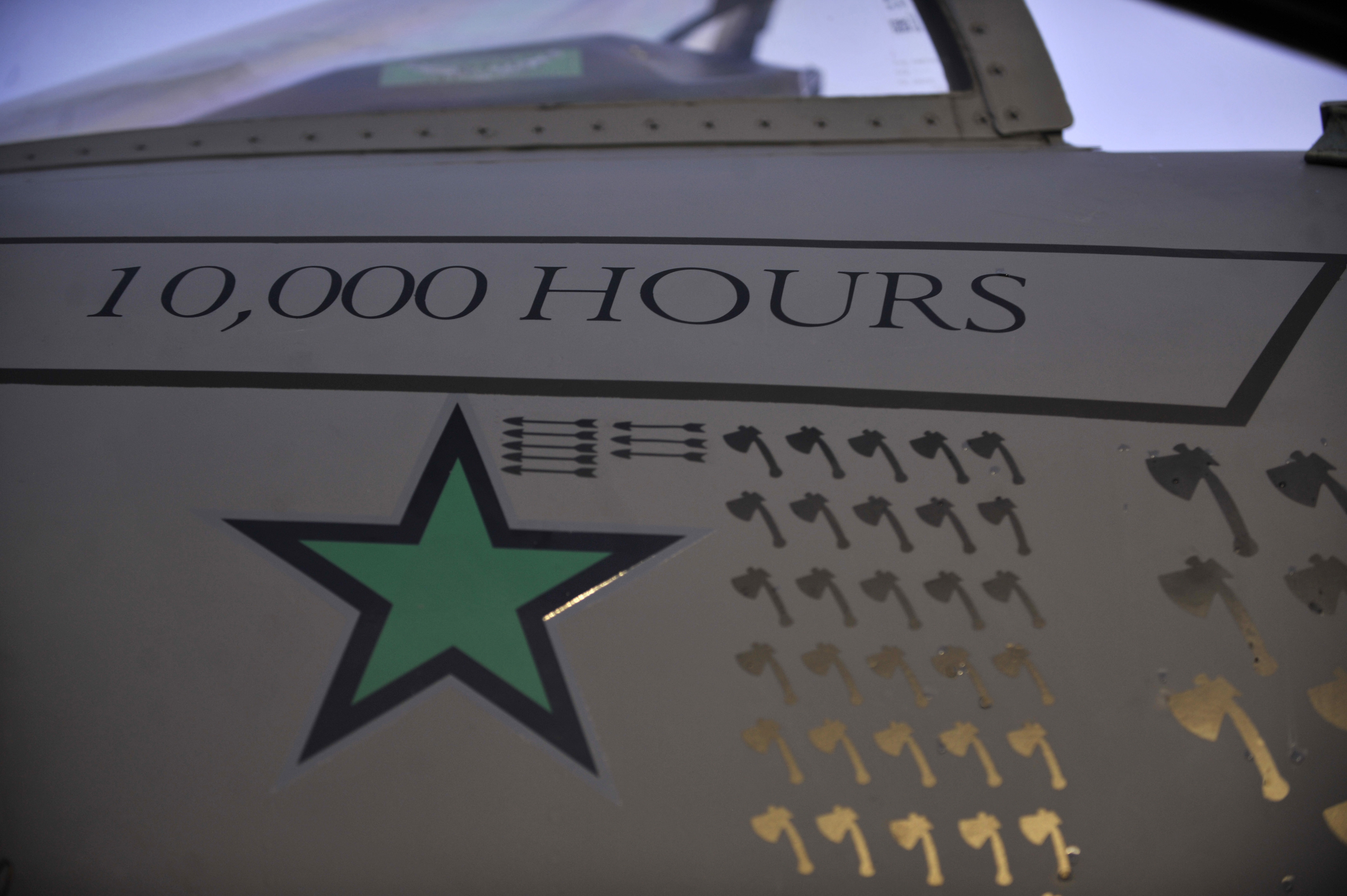 F-15E Strike Eagle, tail number 0487, become the first F-15 to reach 10,000 hours on Jan. 13 at Bagram Airfield, Afghanistan.