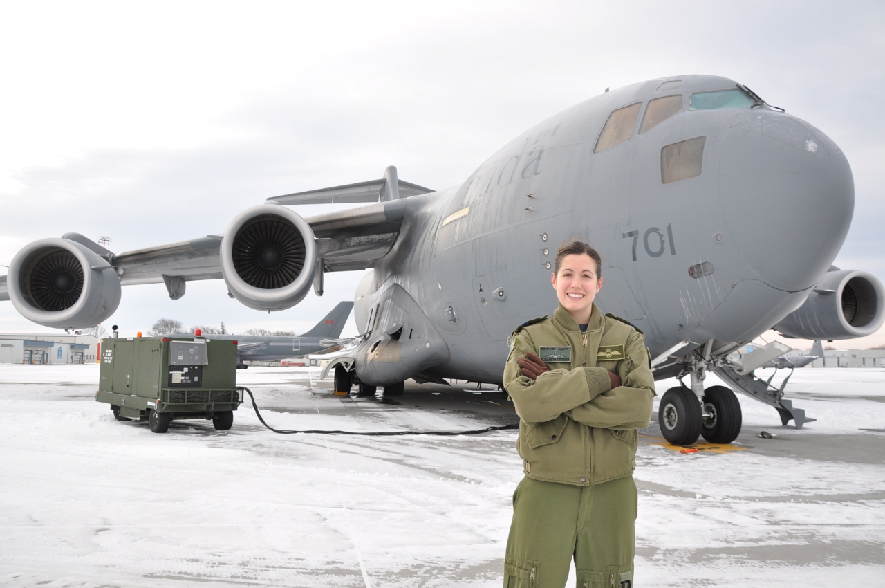 Canada’s first female C-17 pilot Posted on January 19, 2012January 19, 2012 by alert5 Capt Elizabeth Crosier is just 25 years-old and she is the first Canadian female pilot of the CC-177. Credit: Ross Lees. [thumb]http://www.rcaf-arc.forces.gc.ca/8w-8e/nr-sp/index-eng.asp?id=12537[/thumb] Related posts (Automatically Generated): First female Swedish Gripen pilot First female CV-22 pilot completes training First female F-22 pilot chosen to command wing South Korean Navy’s first female P-3C pilot Spitfire’s 75th anniversary All female catapult team on USS Abraham Lincoln
