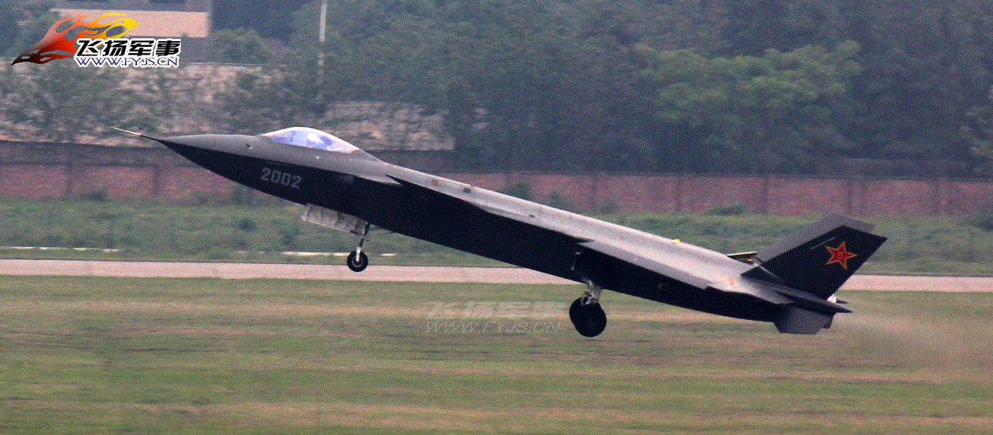 Photo: J-20 #2002 makes first flight Posted on May 17, 2012 by alert5 Airborne around 14:48 local time, landed at 15:08 on May 16. Related posts (Automatically Generated): J-20 expands flight test envelope MV-22 lands on West Coast LHD for first time French Mirage 2000 crashed, human remains found at crash site Summary of J-20’s first flight H-6K airborne photo Eurofighter debuts in Slovakia