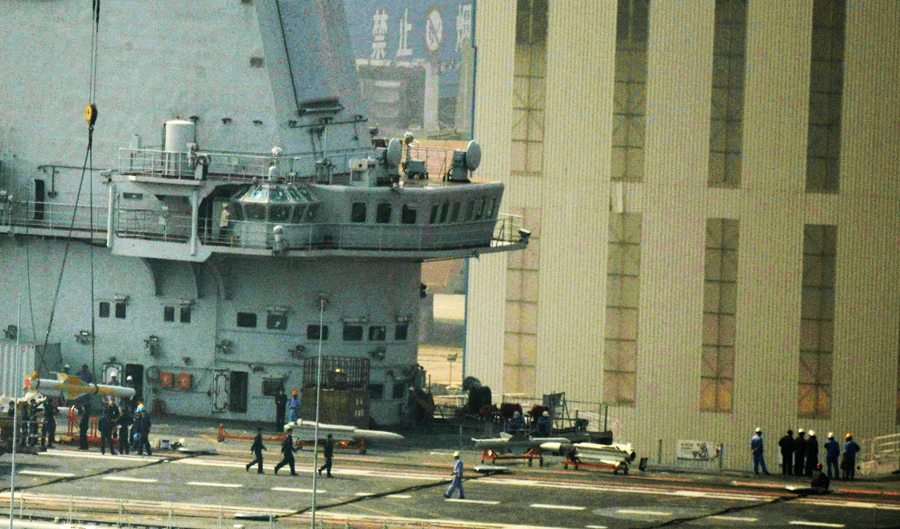 Mock-ups of three air-launched missiles were photographed being loaded on to Varyag recently.