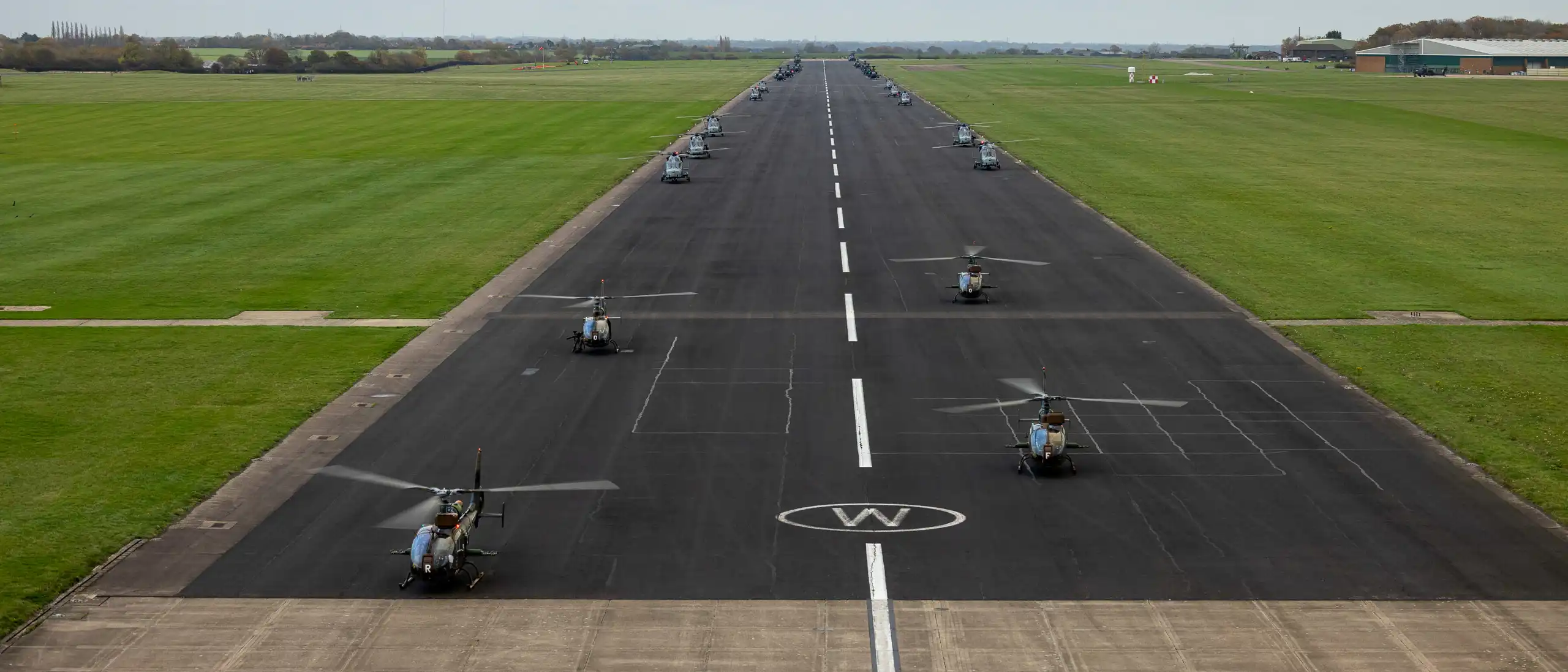 The dramatic runway display, which saw eight Apache attack helicopters, ten Wildcat reconnaissance aircraft, two Chinook transport helicopters, and four French Gazelle helicopters taxi in formation before lifting off together, signals the operational readiness of up to 50 helicopters and 2,000 troops who will train across the United Kingdom through the end of November.