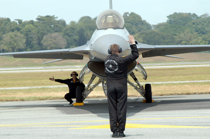 PACAF's F-16 demonstration team showing its skills in Singapore