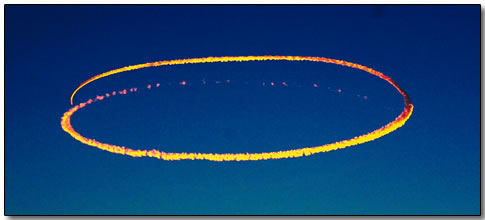A large white halo that appeared in the sky over eastern England on Monday evening was caused by the vapor trails of two F-15E Strike Eagles.