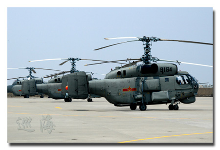 Photo from China Defense Blog showing a closer look of PLAN's Kamov Ka-28 Helix naval helicopters. The chinese words on the fuselage means "Sea Patrol."