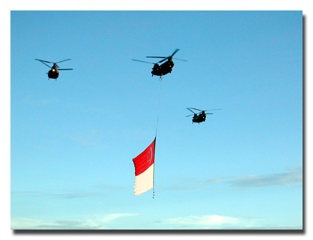 CH-47 carrying the Singapore Flag.