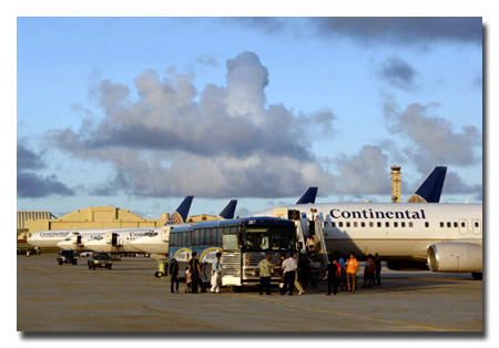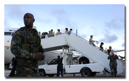 Airmen directed the passengers from the aircraft through customs and onto airport chartered busses. The buses then took the passengers from Andersen to Won Pat International Airport.