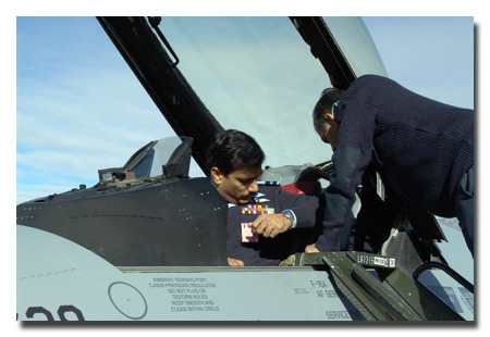 Pakistani Air Commodore Syed Hassan Raza inspects an F-16 Fighting Falcon at Hill Air Force Base, Utah, before it was transferred to the Pakistani air force. U.S. Air Force photo by Dane Anderson.