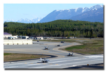 Five F-22 Raptors arrived at Elmendorf Air Force Base, Alaska May 23 for Exercise Northern Edge 2006. U.S. Air Force photo/Staff Sgt. Dave Donovan.