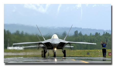 An F-22 Raptor taxis down the runway after completion of its mission during Exercise Northern Edge 2006, on Jun. 7. U.S. Air Force photo/Senior Airman Garrett Hothan.