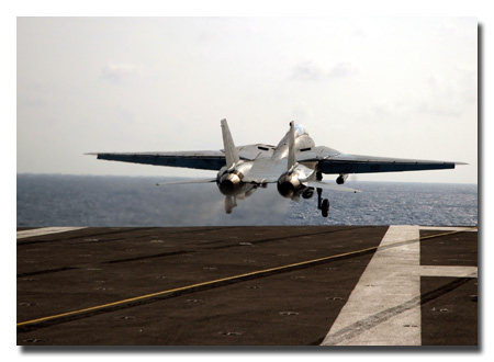 112 from VF-31, piloted by Lt. Blake Coleman and Radar Intercept Officer Lt. Cmdr. Dave Lauderbaugh, is the last F-14 Tomcat to catapult from an aircraft carrier. Last time Baby! U.S. Navy Photo by Mass Communications Specialist 3rd Class Nathan Laird.