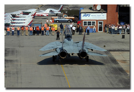 The final U.S. Navy F-14 Tomcat flight was completed at 11:40am 4 Oct. at Republic Airport, Farmingdale, NY. LCDR Chris "Limp" Richard, pilot, and LCDR Robert "Fitz" Gentry, RIO flew Felix 101 back to the place where it was born. Thanks to William Barto and Tom Kaminski for the photos.