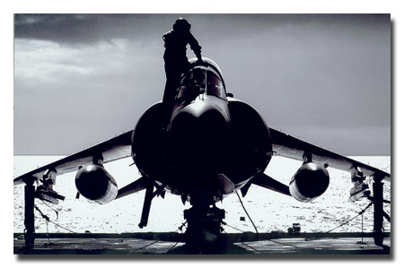 This black and white image of a Sea Harrier by Leading Airman (Photographer) Michael Handy won the 'defence experience' section of the first official U.K. Defence Photographic Competition.