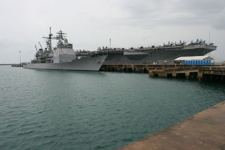 He added:"This visit gives us opportunity to show off the U.S. Navy's newest aircraft carrier as a formidable weapon in the global war against terrorism. The Ronald Reagan Carrier Strike Group's presence in the Western Pacific demonstrates America's commitment to fulfilling its treaty obligations and security arrangements."