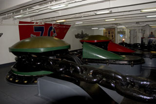 Explanations on the colour codes used to measure how much anchor chain was played out (i.e. released) were hand-painted on the bulkheads (i.e. "walls").