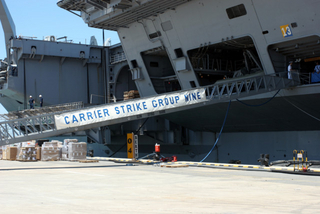 The carrier is the centrepiece of Carrier Strike Group 9. Its sharp end comprises fighter planes, airborne early warning aircraft and anti-submarine helicopters from Carrier Air Wing 2.